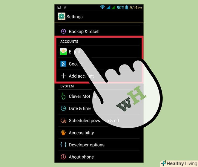 Виберіть розділ "Системні налаштування «і натисніть»акаунти". ви побачите список акаунтів, які в даний момент підключені до вашого телефону.
