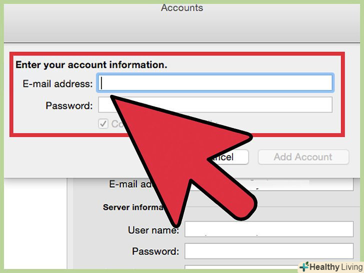 Введіть свою робочу адресу електронної пошти та пароль. програма автоматично визначить тип підключається сервера. Під час процесу налаштування облікового запису вам, швидше за все, знову доведеться ввести свій пароль.- Відзначимо, що Outlook 2016 підтримує лише автоматичне налаштування акаунтів Exchange, так що адміністратору Exchange доведеться провести настройку сервера, щоб його дозволити. Outlook 2016 не підтримує роботу Exchange 2007.[2]