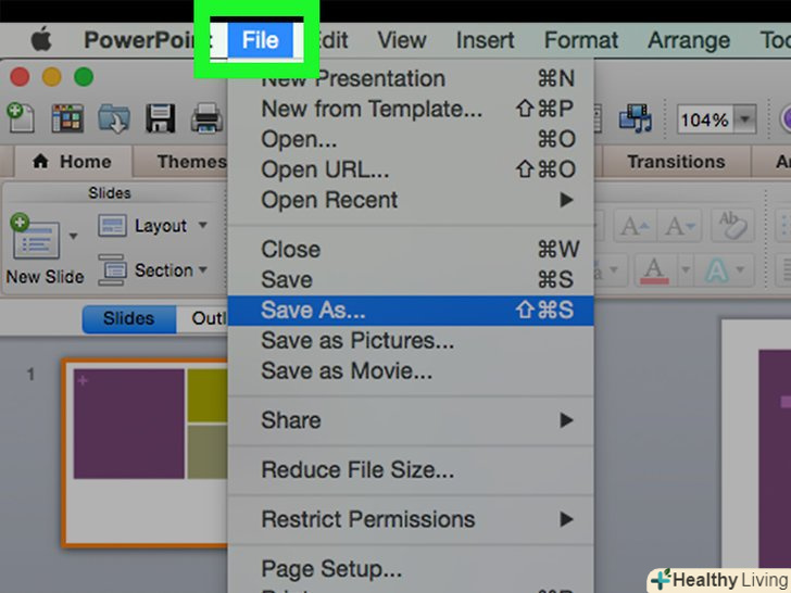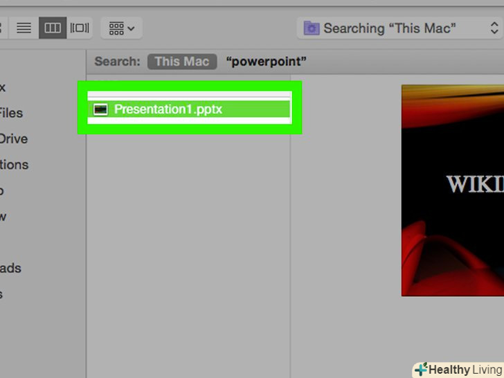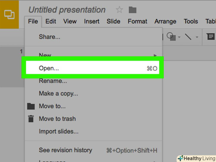 Відкрийте презентацію PowerPoint.для цього клацніть по оранжево-білому значку з буквою»P". Потім в рядку меню натисніть "Файл «gt;»Відкрити".