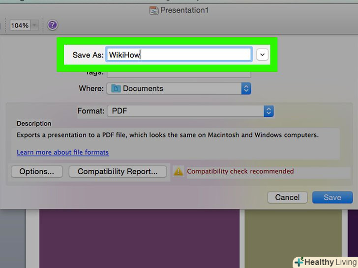 Введіть ім'я документа і натиснітьЗберегти.презентація PowerPoint буде збережена як PDF-документ.