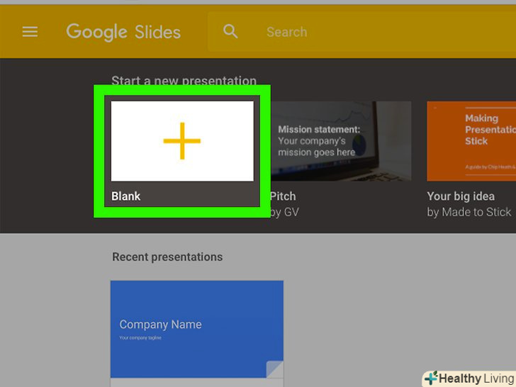 Перейдіть на сторінкуHttp://slides.google.com Http://slides.google.com. клацніть по посиланню або введіть адресу у веб-браузері.- Якщо ви не ввійшли в систему автоматично, зробіть це або створіть безкоштовний обліковий запис Google.