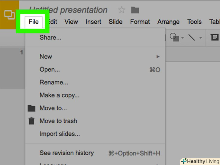 НатиснітьФайл в рядку меню у верхній частині екрана.