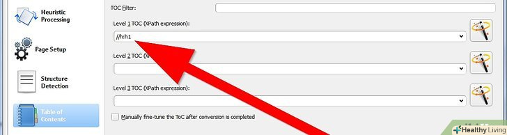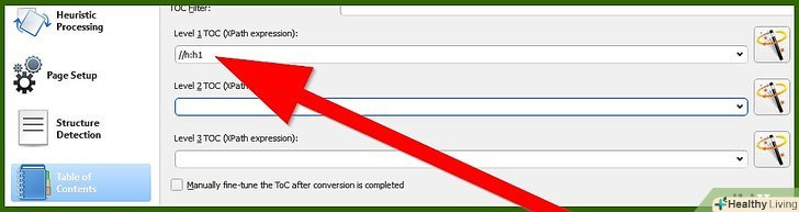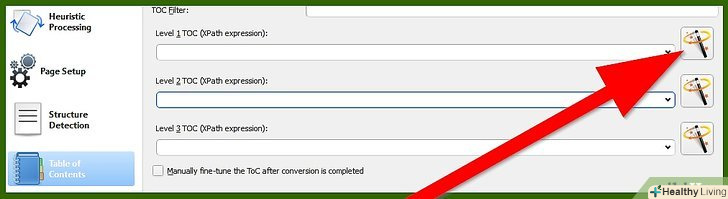 Виберіть кнопку майстра праворуч від "Level 1 TOC (XPath expression):" в "Table of Contents".