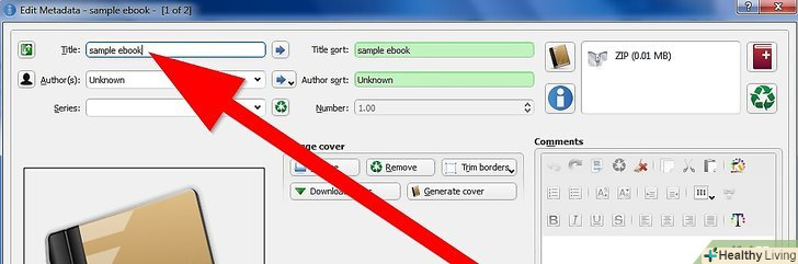 Натисніть кнопку "Edit metadata" " і введіть ту назву, яка має бути. це буде назва, яку побачите, коли завантажте його в eReader.