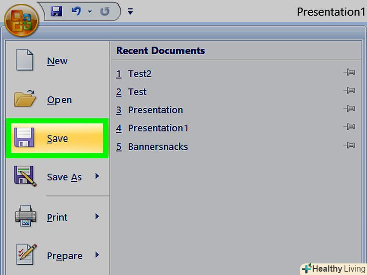Збережіть презентацію з доданим відеороликом. Відео вставлено в презентацію, тобто не потрібно відправляти його разом з презентацією - вона вже включає відеофайл. Але майте на увазі, що Розмір файлу з презентацією збільшиться, так як він буде містити не тільки презентацію, але і відеофайл.- Не потрібно виконувати складні дії для збереження презентації зі вставленим відеофайлом. Просто перейдіть на вкладку "Файл «і натисніть»Зберегти".