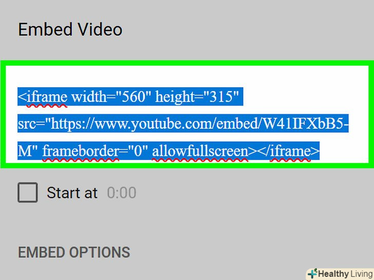 Скопіюйте виділений код. Код для вставки відео буде виділений автоматично. Натисніть Ctrl+C або клацніть по коду правою кнопкою миші і в меню виберіть "Копіювати".