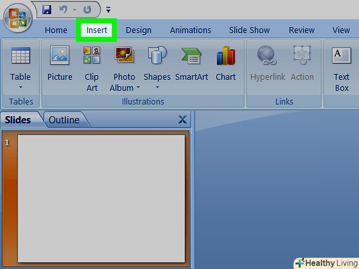 У PowerPoint перейдіть на вкладку "Вставка".відкриються різні опції вставки.