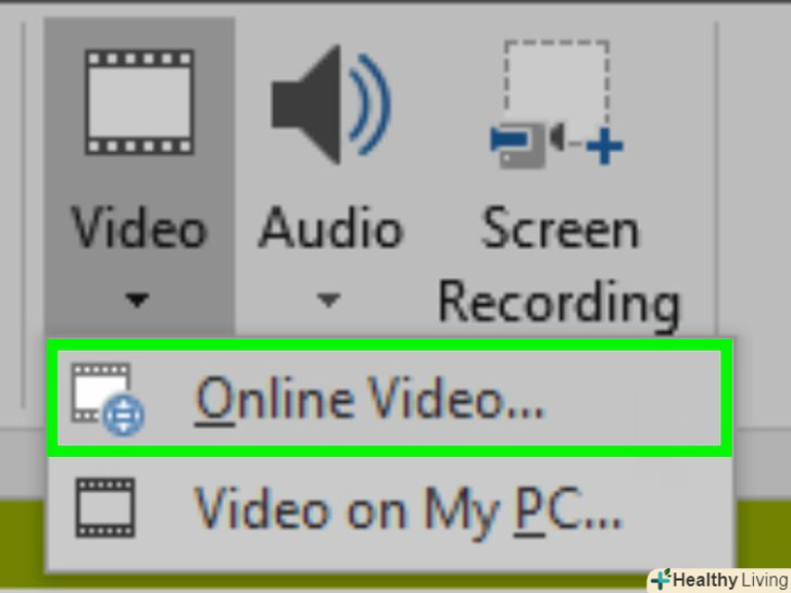 Натисніть "відео «і виберіть»Онлайн-відео".у PowerPoint 2010 натисніть "відео – -»Відео з веб-сайту".