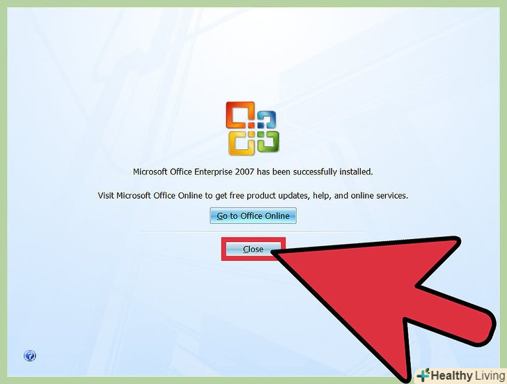 Коли Office повідомить про успішну установку програми, натисніть «Закрити», а потім «ОК». з цього моменту пакет програм Office буде готовий до роботи. [2]