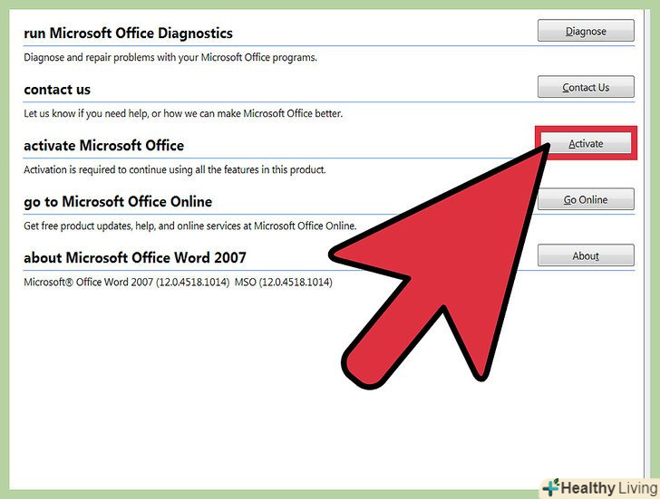 Запустіть продукт Office 2007 з робочого столу або з настановної папки. на екрані з'явиться майстер активації Microsoft Office, щоб ви могли активувати свої нові програми.