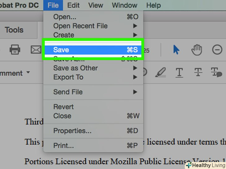 НатиснітьФайл в рядку меню і виберіть Зберегти.файл буде прикріплений до документа PDF.