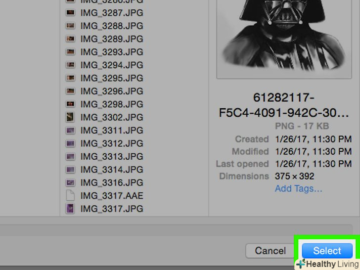 Знайдіть файл, який хочете прикріпити, і натиснітьВибрати.