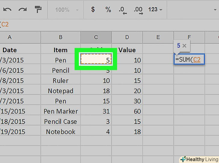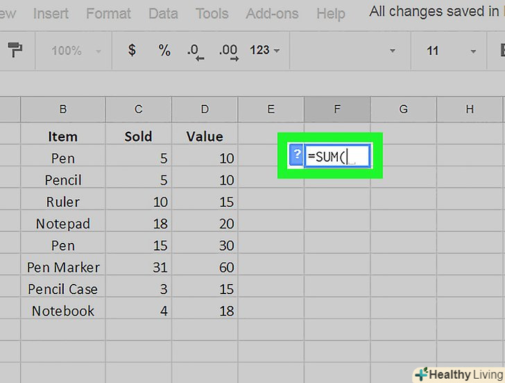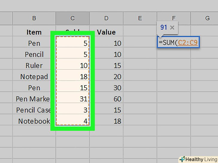 Введіть формулу в першу комірку стовпця.- Якщо таблиця містить рядок із заголовками, не вводьте формулу в комірку з заголовком.