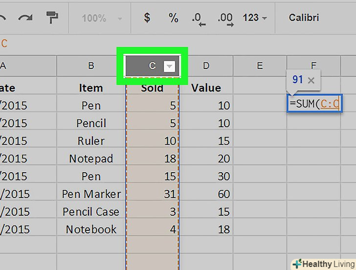 - Натисніть на букву стовпця (вона знаходиться над стовпцем).
