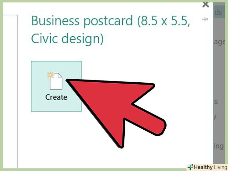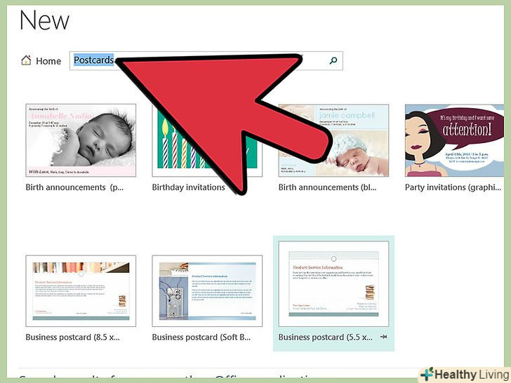 - У Publisher 2010: виберіть "Postcards" з розділу "Most Popular" нижче "Available Templates". Схеми листівок згруповані відповідно до призначення листівки, потім йде розділ для загальних розмірів заготовок, Далі - для розмірів заготовок, згрупованих в папках по виробнику канцтоварів. Ви можете виділити будь-який дизайн, щоб побачити більше інформації у верхній частині панелі Task у верхньому правому куті.