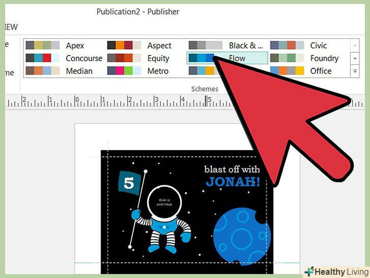 Виберіть колір і схему шрифтів для свого запрошення. кожен шаблон запрошення поставляється з кольором за замовчуванням і схемою шрифтів. Але якщо ви хочете використовувати інший колір або схему шрифтів, то можете зробити це, вибравши нову відповідну схему Font Scheme. Виберіть нову колірну схему з однієї із зазначених колірних схем у випадаючому вікні "Color Scheme", і новий шрифт зі списку font Scheme.- Ви також можете створити свій власний колір або схему шрифтів, вибравши опцію " Create new "з" Color Scheme, "або випадаючого вікна"Font Scheme".