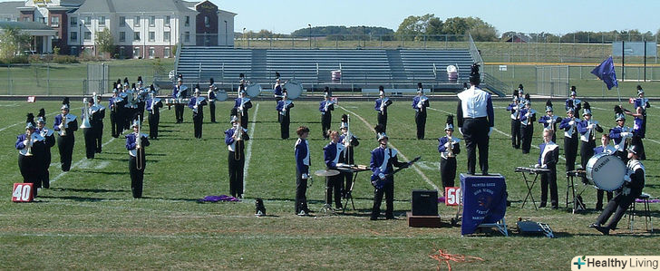 - Ваша група – це люди. Переконайтеся, що у них є час на перерву під час репетицій, на підготовку перед репетиціями і виступами. Якщо доводиться довго стояти, порадьте їм зігнути коліна. Під час довгих парадів нехай глави всіх груп велять опустити інструменти і відпочити. Домовтеся про жест, що сигналізує про початок виконання.