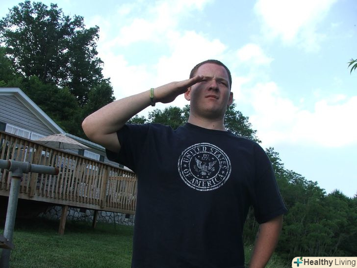 Навчіться салютувати. американці і британці (або шотландці) по-різному віддають честь, так що не заплутайтеся. Потренуйтеся перед дзеркалом, добийтеся впевнених рухів. Слідкуйте за напрямком і кутом нахилу руки.- Якщо після віддання честі слід ще якийсь маневр, прорепетируйте його і завчіть шаблон, який завжди зможете легко виконати. Простий, але чітко виконаний трюк краще, ніж складний, але провалився.