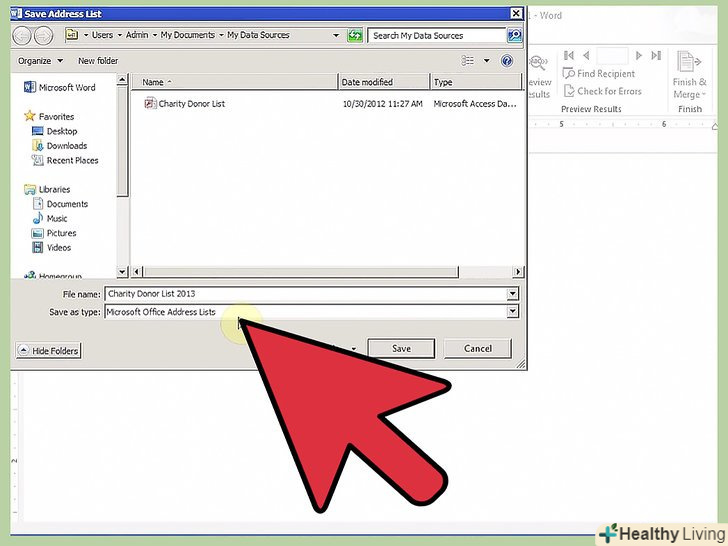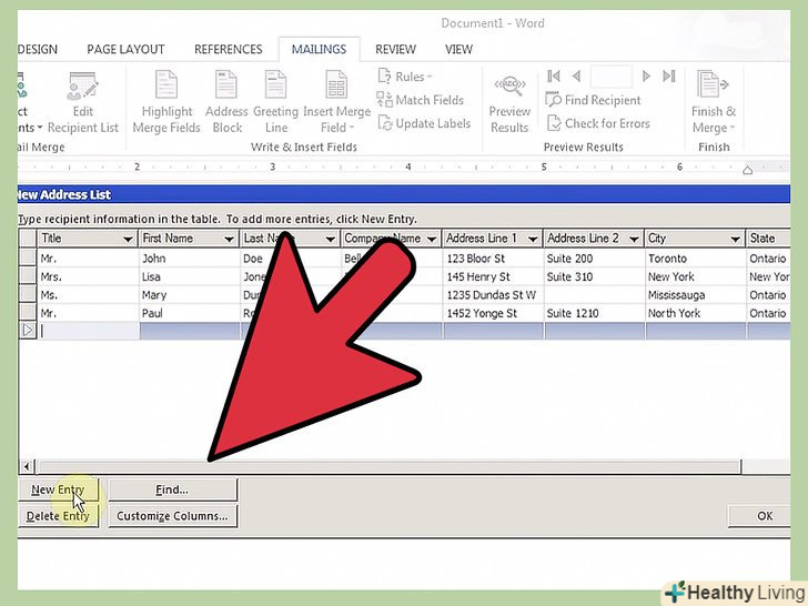 Створіть файл з даними.це може бути електронна таблиця, файл бази даних або текстовий документ з відповідним форматуванням. Найчастіше для цих цілей використовують електронну таблицю; це керівництво має на увазі, що ви використовуєте саме електронну таблицю.- Ваш файл даних повинен містити всю інформацію, яка буде змінюватися від копії до копії. Наприклад, якщо ви створюєте бланк, ваш файл даних повинен містити імена та адреси всіх можливих одержувачів.