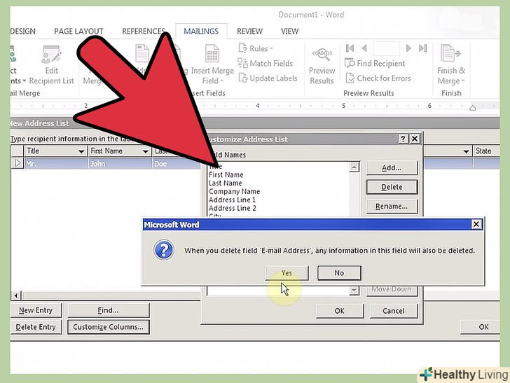 - Якщо ви використовуєте параметр, який не може знайти відповідну інформацію, натисніть на кнопку «відповідність полів», щоб надати інформацію про те, яке з ваших полів відповідає стандартному полю програми. Для прикладу, ви можете показати програмі, що вона повинна використовувати категорію "Ім'я сім'ї «у вашому файлі даних для заповнення блоку» прізвище" в адресному блоці.