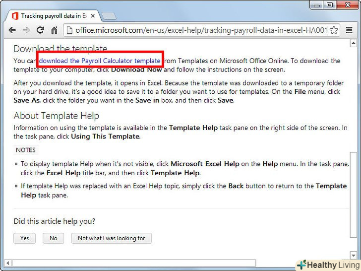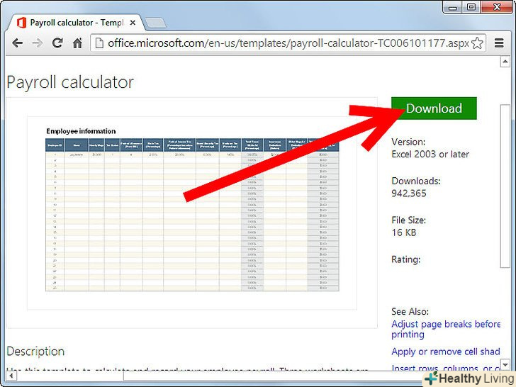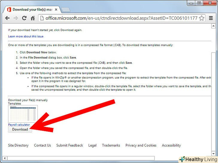 - На сайті Microsoft Office прокрутіть сторінку вниз і натисніть на посилання" Завантажити шаблон розрахунку платіжної відомості "в розділі"завантажити шаблон".