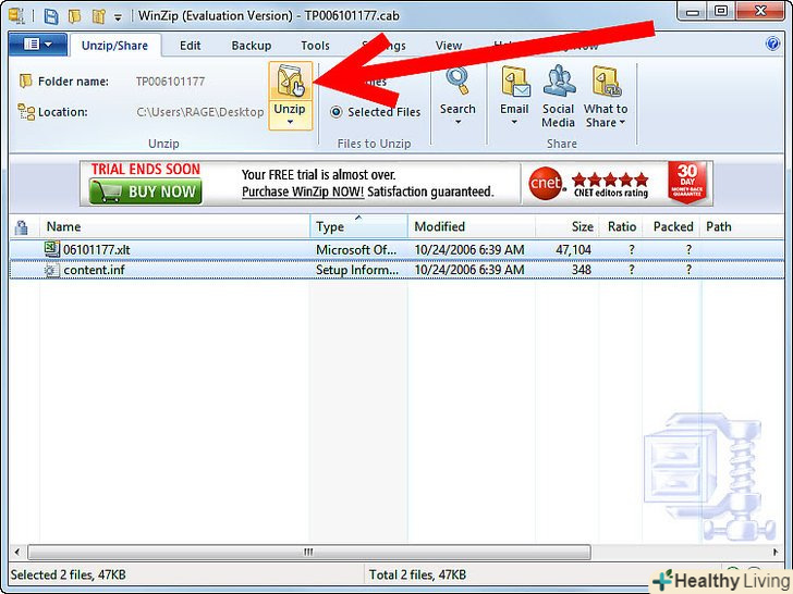 - Залежно від можливостей і версії операційної системи вашого комп'ютера, вам буде запропоновано натиснути "розпакувати" або скористатися утилітою на зразок Winzip для розпакування шаблону.