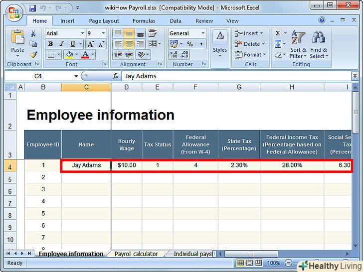 Підготуйте платіжну відомість для вашого підприємства.ви можете відкрити вашу робочу книгу в Excel.- Заповніть лист "Employee Information"("інформація про персонал"). За замовчуванням повинен відкритися саме цей лист. Вам буде запропоновано ввести імена працівників, їх ставку оплати, а також податкову інформацію - таку як розміри утримань і відрахувань.