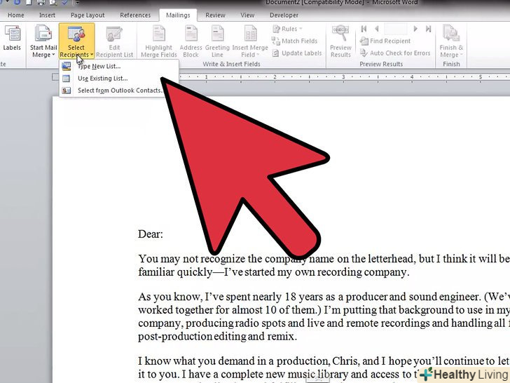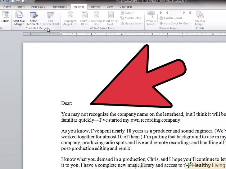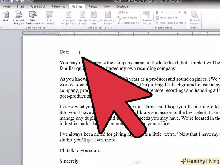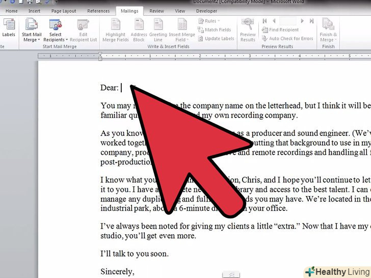 Створіть документ так, як ви зазвичай робите (з нуля або за допомогою шаблону).перед цим важливо ввести дані одержувачів, щоб використовувати відповідні "поля" при створенні документа.- В мережі пошукайте інформацію про написання офіційного листа.