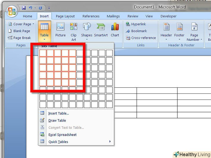 У меню, яке з'явиться нижче кнопки таблиця, за допомогою миші виберіть кількість комірок в таблиці.наприклад, якщо ви перемістите мишу, щоб виділити сітку 4x4 комірки, сітка матиме 16 комірок. Натисніть, щоб створити діаграму.