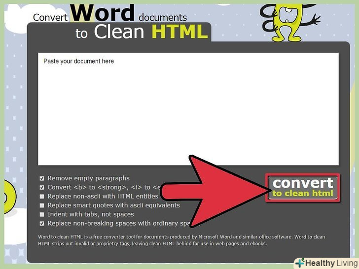 Якщо вам потрібен багатофункціональний інструмент або вас не влаштовують результати роботи перерахованих вище інструментів, спробуйте скористатися наступними безкоштовними сервісами:- Word2CleanHTML - зберігає більшу частину формату вихідного документа і створює HTML-сторінку, придатну для застосування у веб-розробці.[1] цей інструмент пропонує налаштувати параметри конвертації, наприклад, визначити дії з нестандартними символами або порожніми абзацами.