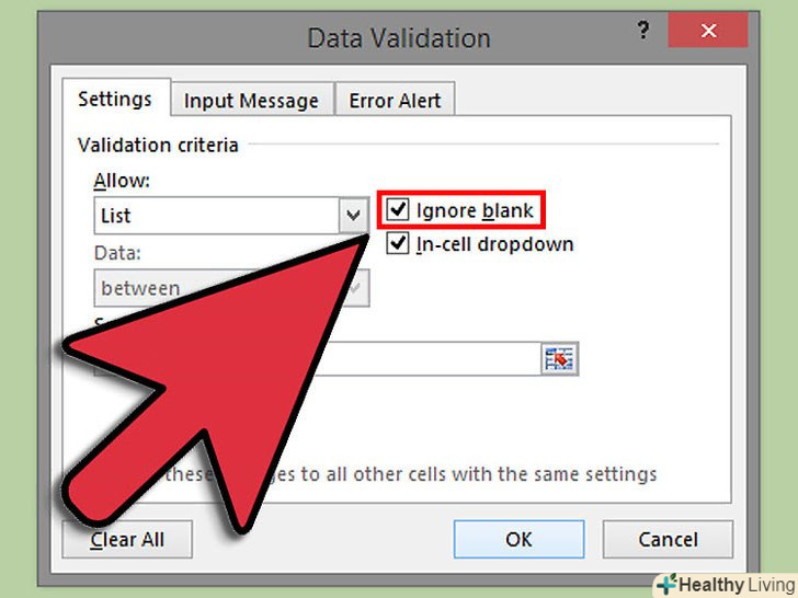 Встановіть галку у «ігнорувати порожні комірки " в тому випадку, якщо ви хочете, щоб користувачі мали можливість вибрати нульові елементи зі списку, що випадає.