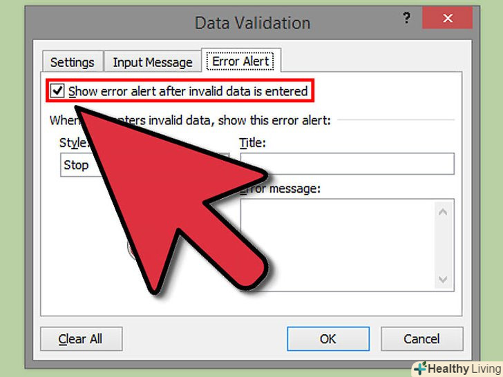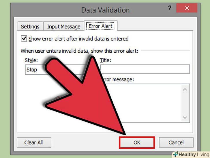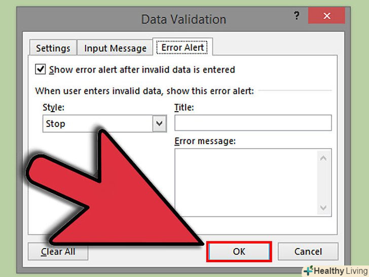 Встановіть галку у "виводити повідомлення про помилку".ця опція не дозволяє користувачам вводити невірні дані.