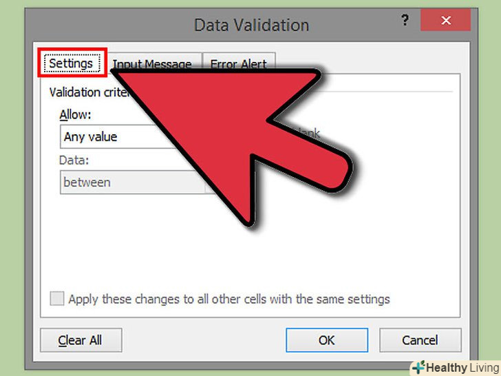 Перейдіть на вкладку " Дані "і виберіть" Перевірка даних "з групи"робота з даними".відкриється вікно "перевірка вводяться значень".