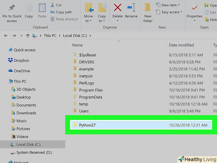 Видаліть папку Python 2.якщо видалити Python 3, папка Python 3 буде видалена автоматично, чого не скажеш про видалення Python 2. Щоб видалити папку Python 2, виконайте наступні дії:- Відкрийте вікно "цей комп'ютер";