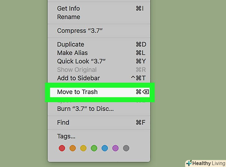 НатиснітьПеремістити в кошик.ця опція знаходиться в меню "Файл".