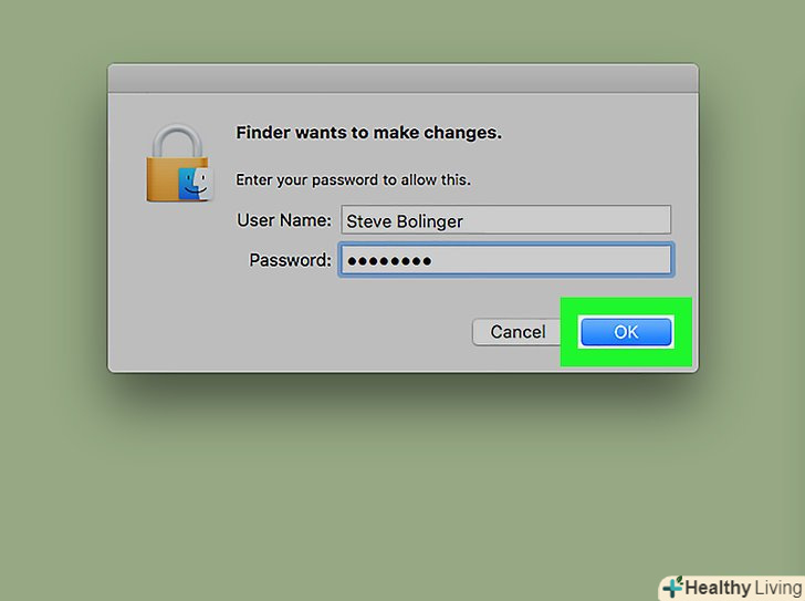 Введіть пароль, коли з'явиться запит.введіть пароль, який використовується для входу в систему.- Пропустіть цей і наступний кроки, якщо вводити пароль не потрібно.