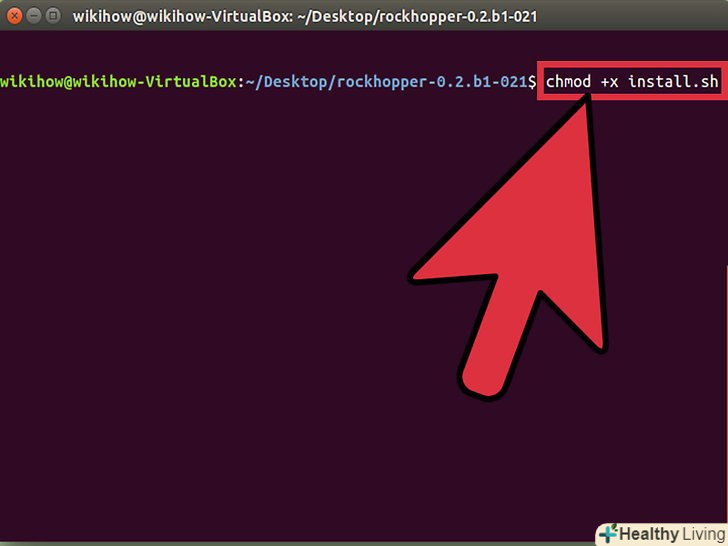 Зробіть файл.sh виконуваним. Щоб зробити файл виконуваним, введіть в термінал наступну команду: chmod +x install.sh. Замініть install.sh іменем .sh-файлу. Натисніть ↵ Enter.
