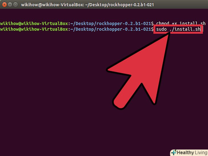 Запустіть файл.sh. Введіть цю команду: sudo ./install.sh. Знову замініть install.sh іменем .sh-файлу. Натисніть ↵ Enter Примітка: Якщо це не спрацює, спробуйте виконати команду sudo bash install.sh без «./ "(цей спосіб спрацював на Ubuntu 16). Для цього вам доведеться ввести пароль адміністратора.