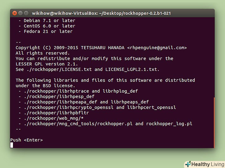 Відкрийте термінал за допомогою поєднання клавішCtrl+Alt+T. введіть таку команду: cd ~/Deskop / rockhopper-0.2.b1-020. Замініть rockhopper-0.2.B1-020 ім'ям папки на робочому столі. Натисніть ↵ Enter.