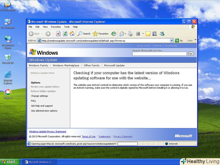 Оновіть Windows. для цього або запустіть Internet Explorer і натисніть "Сервіс» - «Центр оновлення Windows», або натисніть «Пуск» - "Виконати" і у вікні, введіть %SystemRoot%\system32\wupdmgr.exe. Якщо необхідно, перезавантажте комп'ютер. Регулярне оновлення системи гарантує її безпеку.