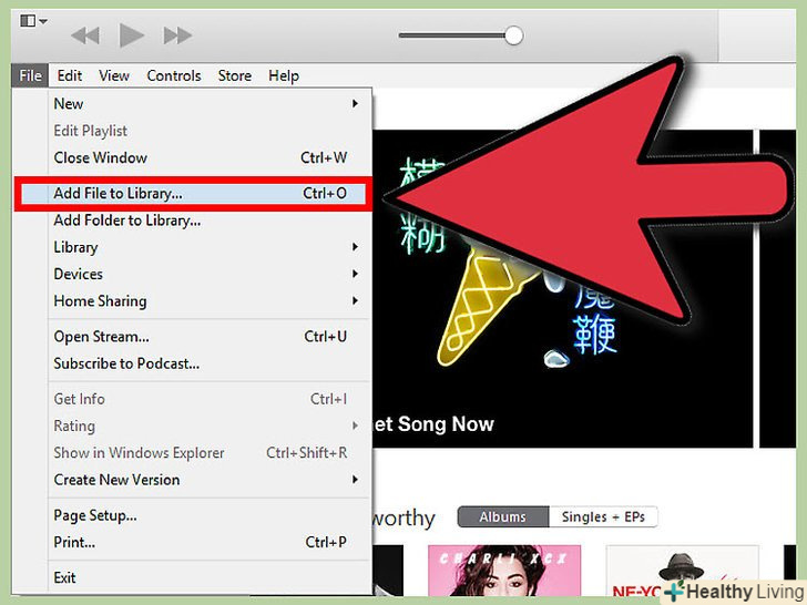 Додайте аудіо файли в медіатеку iTunes, щоб відтворювати їх в iTunes і синхронізувати з іншими пристроями від Apple.- Натисніть "Файл «(у Windows) або» iTunes" (у Mac OS). Якщо ви не бачите рядок меню, натисніть Alt.