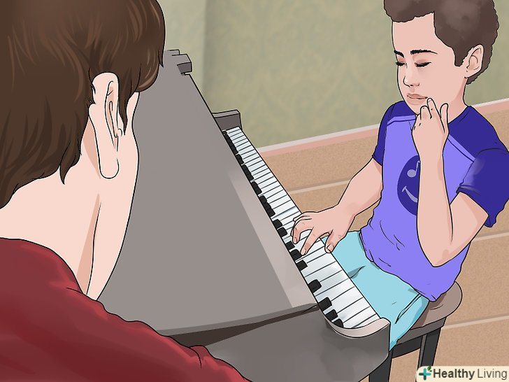 Візьміть до уваги вік дитини.якщо ваша дитина старше шести років, ви можете вибирати з широкого спектру музичних інструментів. А ось у дитини молодшого віку вибір обмежений: йому підійдуть лише ті інструменти, з якими він зможе впоратися фізично. В такому випадку найбільш розумно буде віддати перевагу скрипці або піаніно. З цими варіантами маленькі діти легше справляються.[2]- Піаніно може бути відмінним вибором для маленької дитини — воно дозволить сформувати базові навички. Крім того, тут присутній візуальне уявлення, яке сприяє розумінню музичної теорії і музики в цілому.