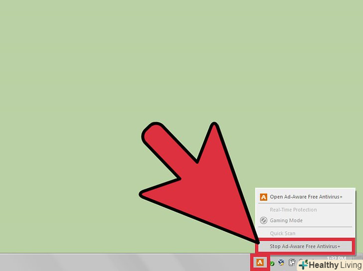 Закрийте програму Ad-Aware Free Internet Security.для цього на панелі завдань знайдіть і клацніть правою кнопкою миші по значку цієї програми. У нижній частині меню клацніть по "вихід".[4]- Відкриється повідомлення з проханням підтвердити, що ви збираєтеся закрити програму Ad-Aware. У вікні з повідомленням натисніть "Так".