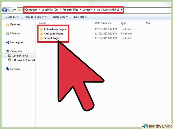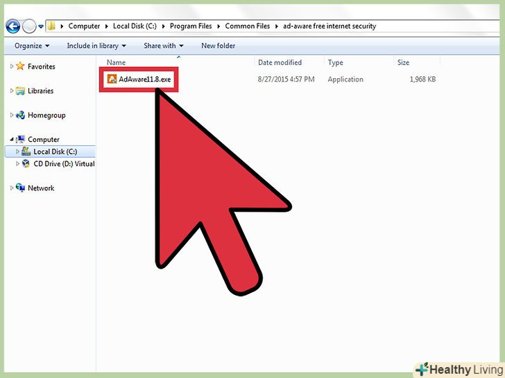 Виберіть відповідний локальний диск.відкрийте локальний диск, на якому була встановлена програма Ad-Aware, щоб вручну знайти і видалити залишилися папки і файли. Якщо відкрити зовнішній носій інформації (як правило, система присвоює йому букву Е:) або локальний диск з даними (як правило, система присвоює йому букву D:), ви не зможете знайти файли і папки, що залишилися від Ad-Aware (навіть якщо будете шукати по розширеннях файлів).[14]