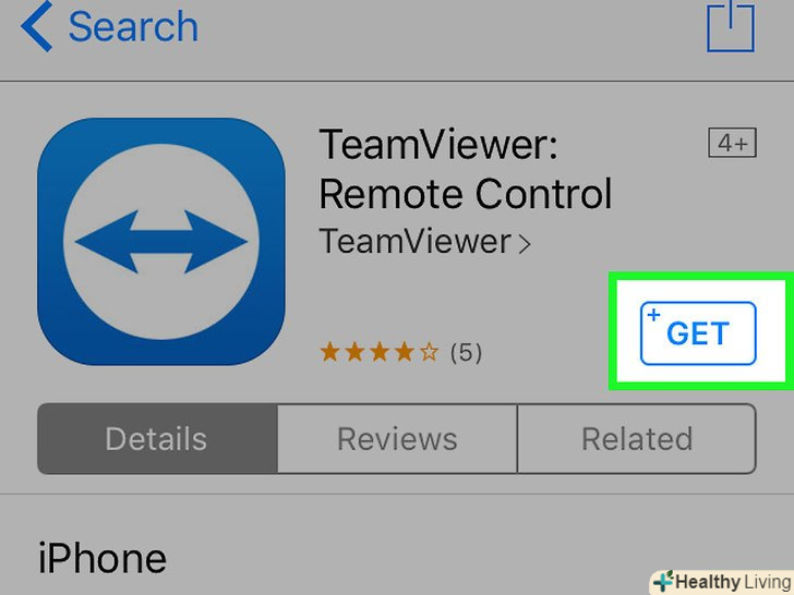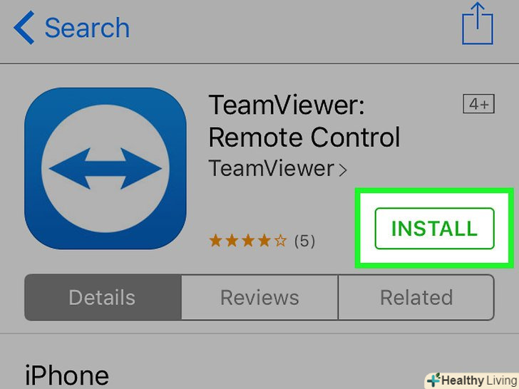 Торкніться < span class="nowrap" title="This is not a clickable button; it illustrates the button one should find." style="font-family: Segoe UI, Frutiger, Frutiger Linotype, Dejavu Sans, Helvetica Neue, Arial, sans-serif;letter-spacing:0px;padding:0em .6em; border:1px solid; border-color:#AAA #555 #555 #AAA; -moz-border-radius: 0px; -webkit-border-radius: 0px; border-radius: 0px; background-color: #F2F2F2; background-image: -moz-linear-gradient(top, #FCFCFC, #E0E0E0); background-image: -o-linear-gradient(top, #FCFCFC, #E0E0E0); background-image:-webkit-linear-gradient(top, #FCFCFC, #E0E0E0); background-image: linear — gradient(top, #FCFCFC, #E0E0E0);">встановити поруч з додатком «TeamViewer-віддалений доступ» (на iPhone).на iPhone спочатку натисніть "Завантажити«, а потім — »Встановити".
