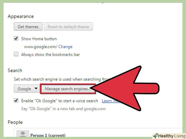 Налаштуйте пошук. натисніть на меню налаштувань зліва. У пошуку виберіть "Управління пошуковими системами". Прокрутіть вниз списку і знайдіть Funmoods. Натисніть на хрестик X праворуч. Натисніть Готово.
