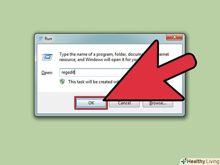 Відкрийте Реєстр.Будьте обережні, не видалите нічого важливого. Будьте обережні, не видалите нічого зайвого. Не робіть цього до того, як зробите всі попередні кроки.- Натисніть на меню Пуск і введіть "regedit" в рядок пошуку. Виберіть regedit зі списку програм.