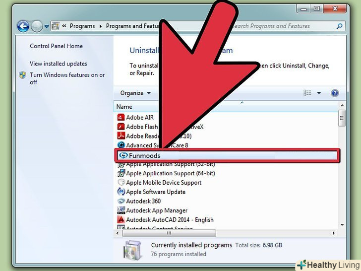 Знайдіть у списку Funmoods. натисніть кнопку F, щоб перейти в потрібну частину списку. Натисніть на програму, потім натисніть Видалити.