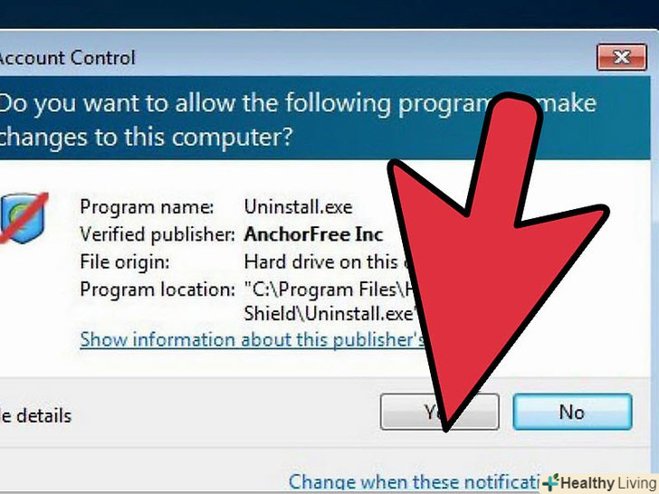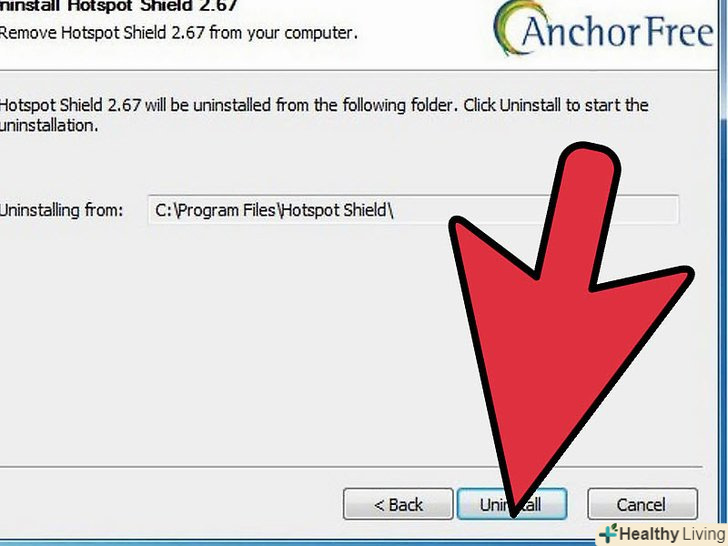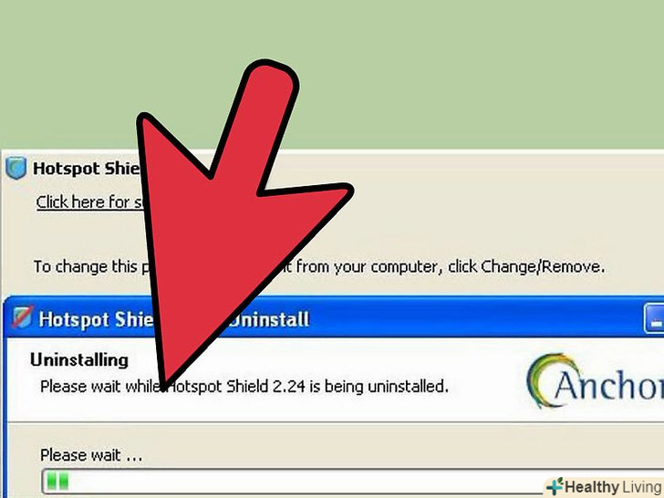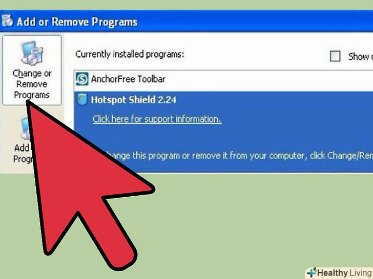 Або ж ви можете натиснути Start gt; Settings gt; Control Panel gt; Add or Remove Programs (для Windows XP) або Uninstall or change a program (для Windows Vista/7) – знайдіть програму Hotspot Shield 2.24 і натисніть кнопку Change/Remove. Примітка: вам доведеться видалити AnchorFree Toolbar вручну після видалення Hotspot Shield.
