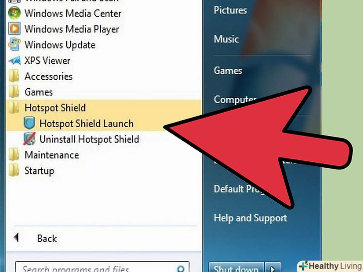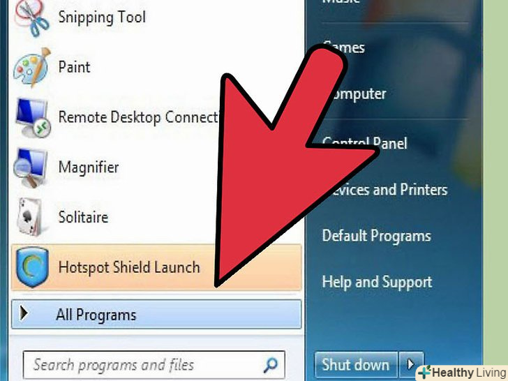 Щоб швидко видалити Hotspot Shield v2.67, Натисніть Пуск – всі програми.